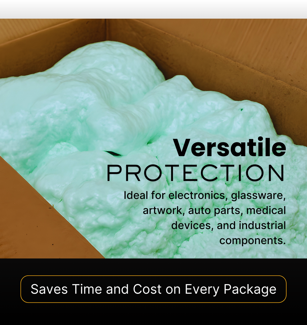 Custom Fit: Foam expands inside a bag or box to mold around the product.
