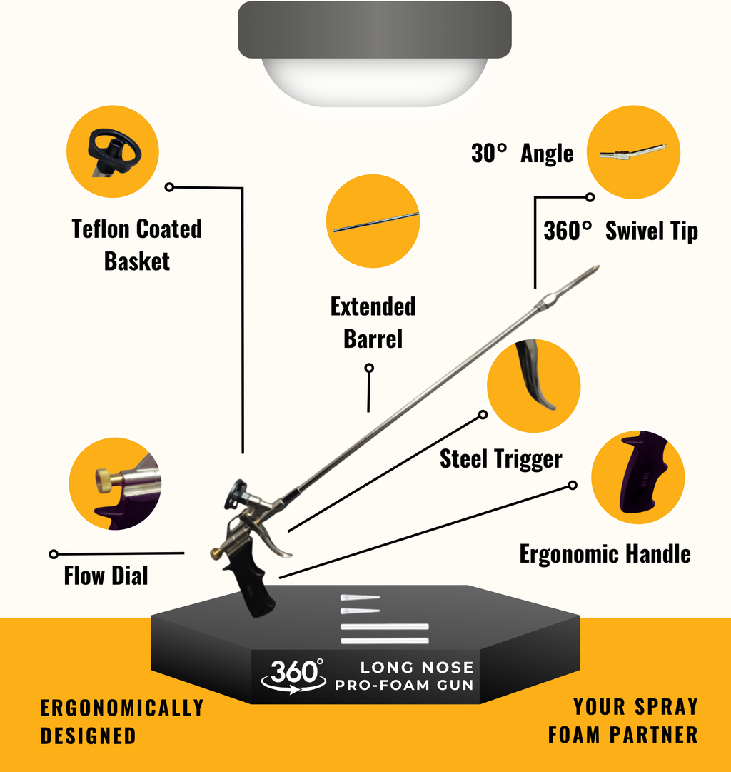 • 24" Extended Reach & 360° Swivel Tip: Eliminate back strain and awkward positioning. The extra-long barrel and rotating tip allow you to reach deep into crevices and apply foam at any angle with ease.