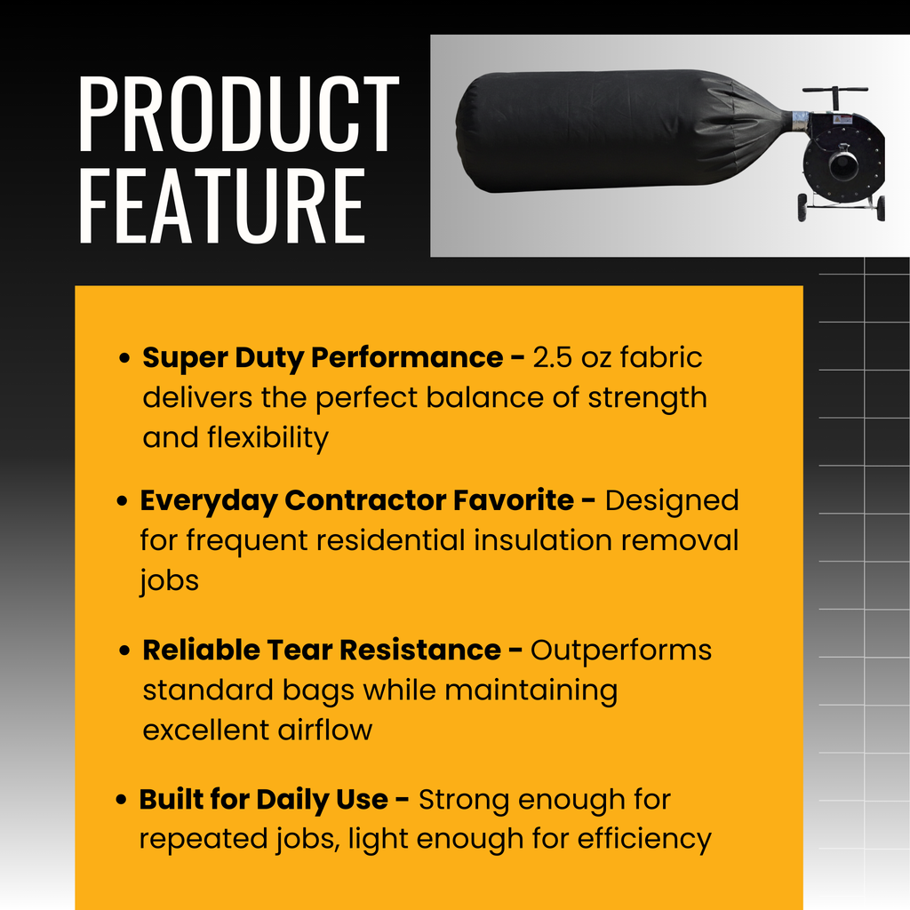 75 CUBIC FOOT CAPACITY: Each 4’ x 6’ bag is designed for massive volume. Whether you are extracting loose-fill fiberglass, cellulose, or rockwool, these bags allow you to clear entire attics with fewer bag changes.