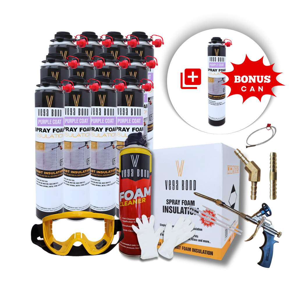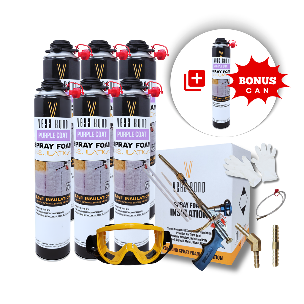 Vega Bond Purplecoat Single Component Closed Cell Spray Foam Insulation Kit (Covers 20 Board Feet Per Can at 1 inch thickness)